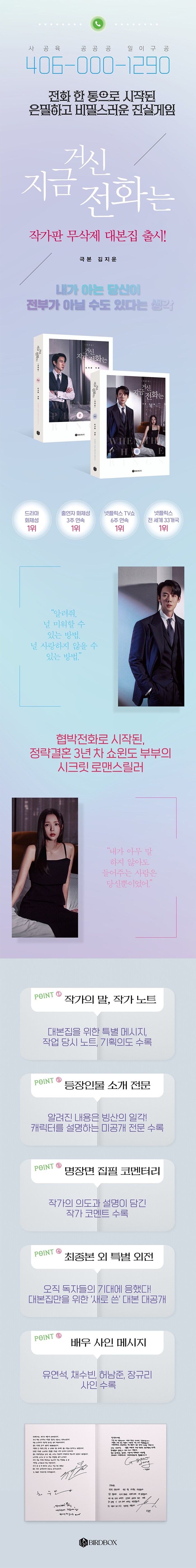 「熱い」を通り越し、爆発的と言える反響を呼び起こして幕を閉じたドラマ『その電話が鳴るとき』の脚本家版無修正シナリオ集が出版された。このドラマは同名の原作ウェブ小説を映像化した作品で、キム・ジウンが脚本を担当し、原作とはまた違った面白さで視聴者の心を溶かした。政略結婚した仮面夫婦が偶然脅迫電話を受け、少しずつ心を開き、互いの愛を確かめるというシークレット・ロマンススリラーである『その電話が鳴るとき』の人気は、終了後もいまだ冷めやらない。
